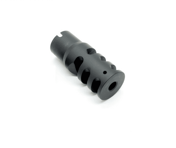 Данный дульный тормоз-компенсатор эффективно убирает подбрасывание ствола при выстреле и снижает импульс отдачи выстрелу с помощью уникальной системы отвода пороховых газов.