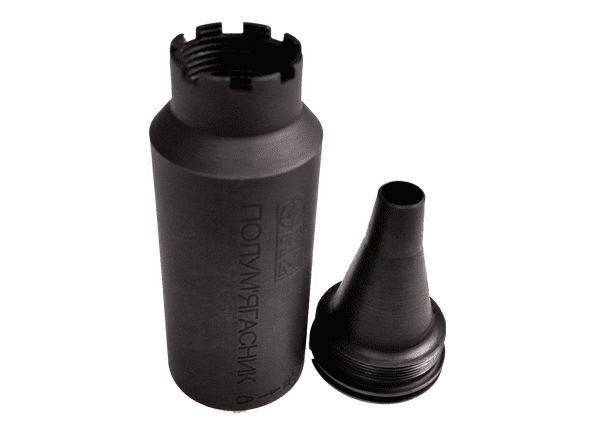 Практично повністю усуває спалах під час пострілу. Не дає засвічення при використанні нічних прицілів.